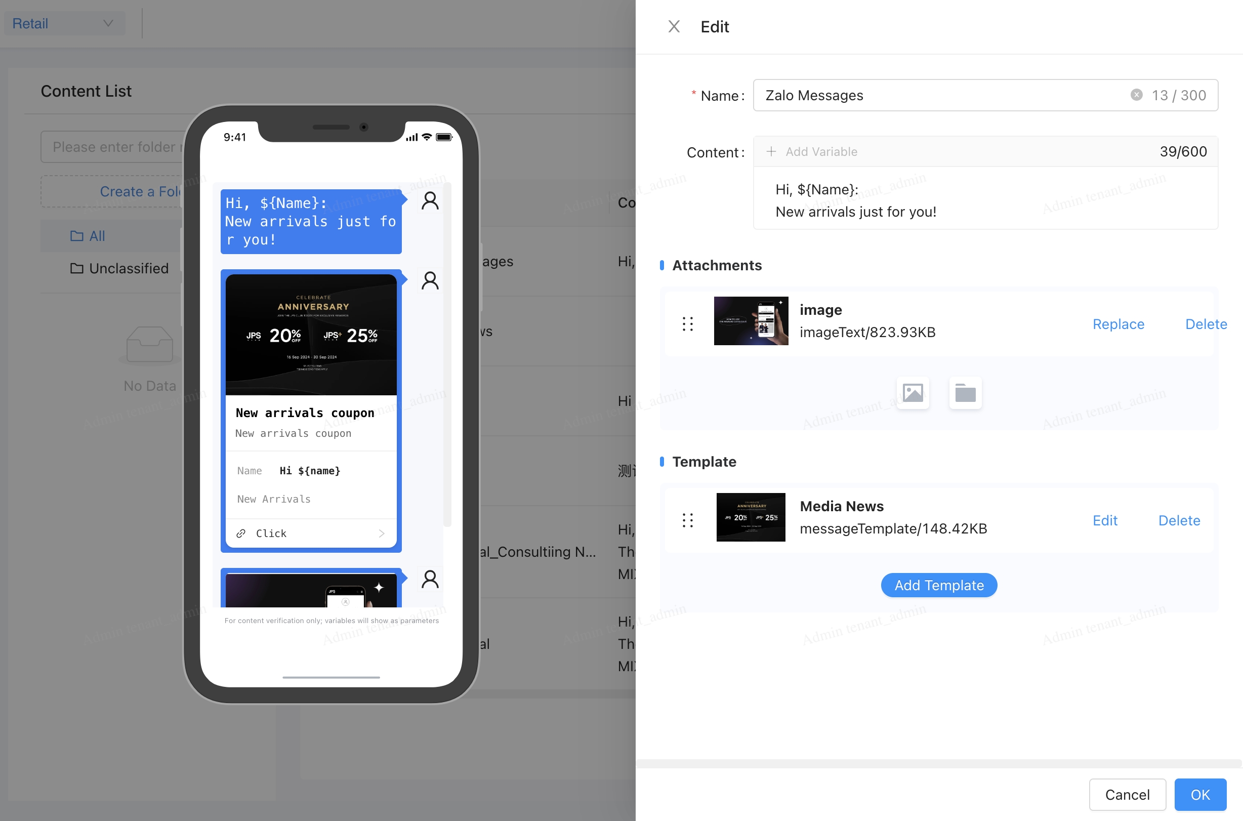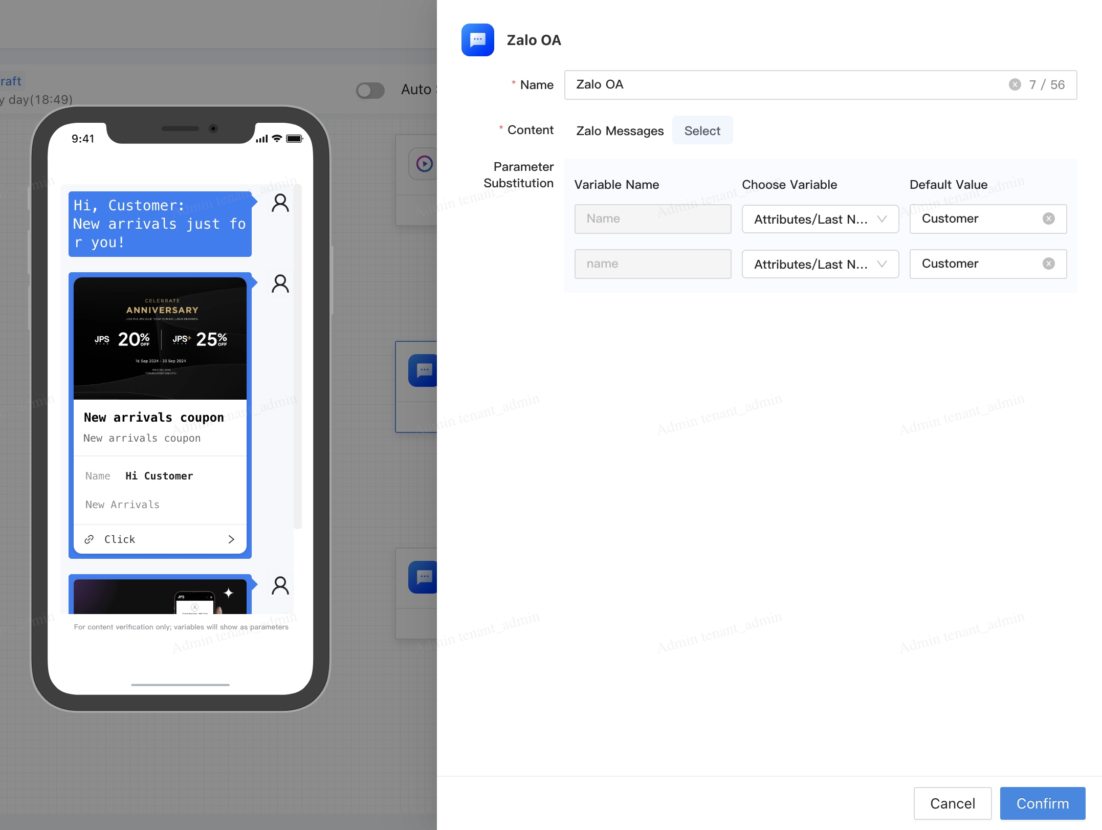 画布中对接标准Zalo OA触点,开箱即用